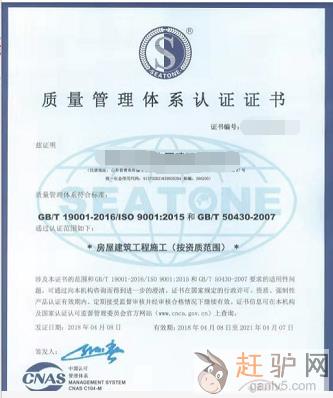 ISO9001来自www.ganlv5.com质量管理体系认证证书