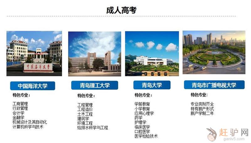 欢迎报考中国海洋大学、青岛理工大学、青岛大学、中国石油大学、青岛广播电视大学。原文www.ganlv5.com